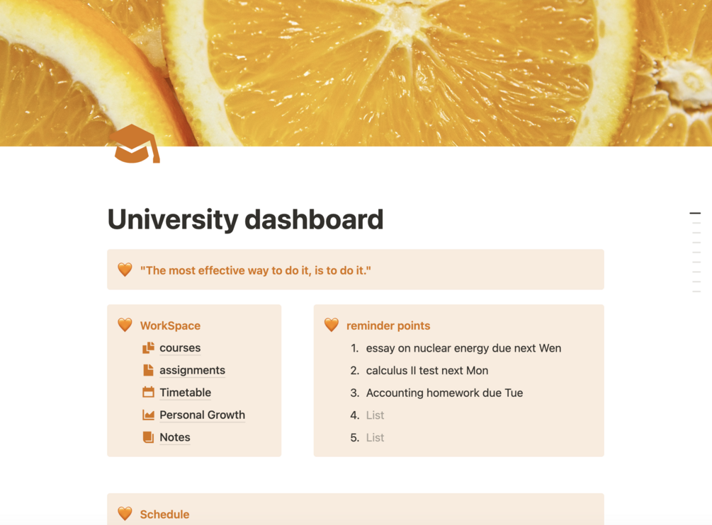 Orange Minimilst University Dashboard Notion